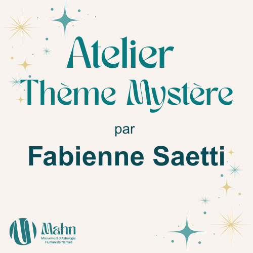 Niveau requis pour cet atelier : notions d’astrologie de base acquises (signes, planètes, maisons, aspects) —> cet atelier portera sur l’étude d’un thème astrologique. |